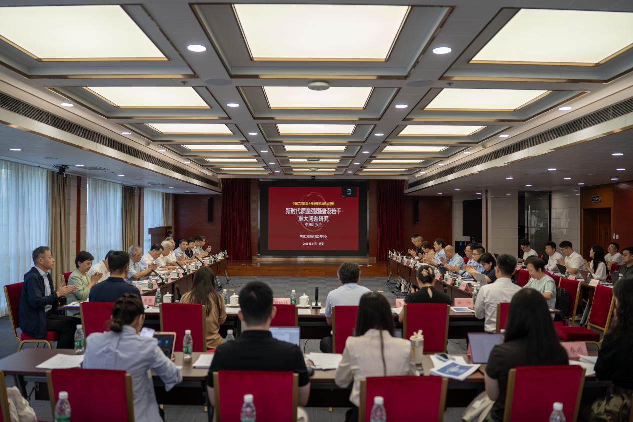 2025年9月1日上午,中国工程院与国家市场监督管理总局联合开展的“新时代质量强国建设若干重大问题研究”重大咨询项目中期汇报会在中国工程院召开。中国工程院院士彭寿、庞国芳、王海舟,国家市场监督管理总局质量发展局局长顾绍平、一级巡视员郭欣及有关领导,中国工程院战略咨询中心主任黎青山,小米集团、京东集团、三元食品、新译科技等企业质量部门代表,特邀专家及课题承担单位相关人员共40余人参加会议。