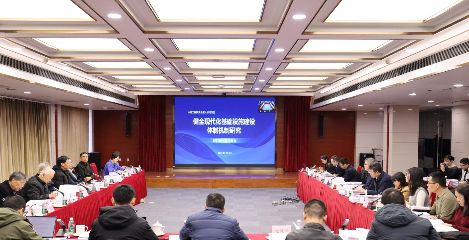 2025年12月4日,中国工程院重大咨询项目“健全现代化基础设施建设体制机制研究”预结题评审会在北京召开。会议由丁烈云院士主持,卢春房、傅志寰、孙永福、周建平、吴伟仁、陈晓红等院士专家,院机关工作人员,以及30余名项目组成员出席了会议。